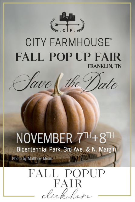 City Farmhouse Fall Pop Up Fair in Franklin, Tennessee, event details for November 7th and 8th, and location Bicentennial Park.